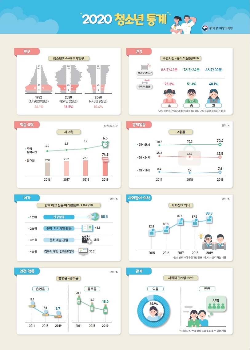 '2020 청소년 통계'의 자세한 내용은 다음을 통해 확인하시기 바랍니다.