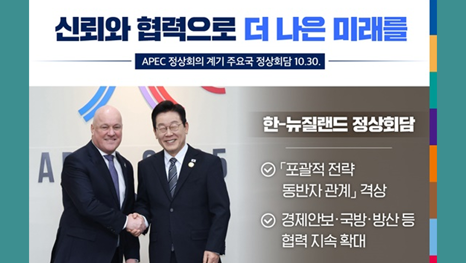 대한민국과 뉴질랜드, 한 단계 높은 협력 관계로