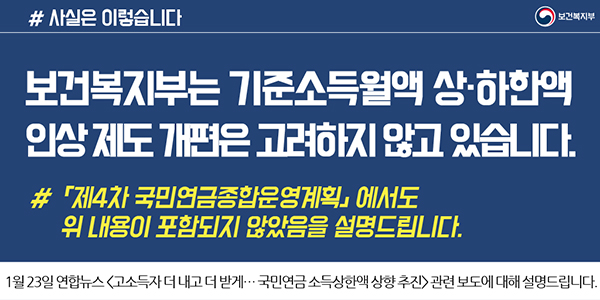 1월 23일 연합뉴스 <“고소득자 더 내고 더 받게”…국민연금 소득상한액 상향 추진>에 대한 해명입니다