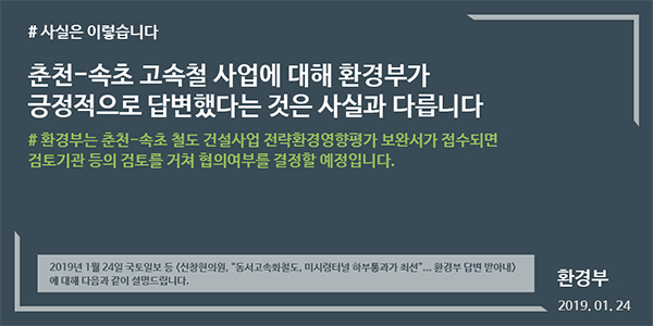 환경부, ‘춘천-속초 고속화철도’ 긍정 답변한 사실 없어