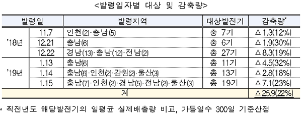 ①에 대하여 : 상한제약 발전소의 실제 배출량 분석결과 하루 최대 32% 감축