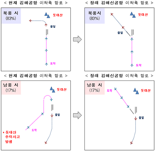 즉, 북측의 산악 장애물로 인한 현재 김해공항 안전성 문제를 근본적으로 해결하기 위해 김해신공항 건설은 반드시 필요합니다.