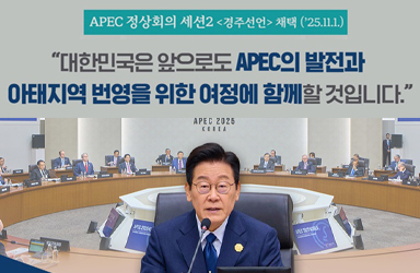 정책브리핑 게시물 운영원칙에 따라 다음과 같은 게시물은 삭제 또는 계정이 차단 될 수 있습니다.