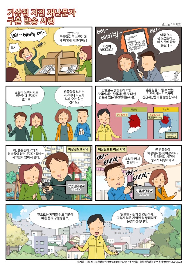 [2025. 12월 정책만화] 기상청 지진 재난문자 구분 발송 시행