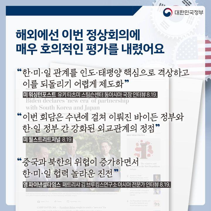 캠프 데이비드 3국 정상회의(8.18)를 계기로 한미일 협력의 새로운 시대가 열렸습니다.