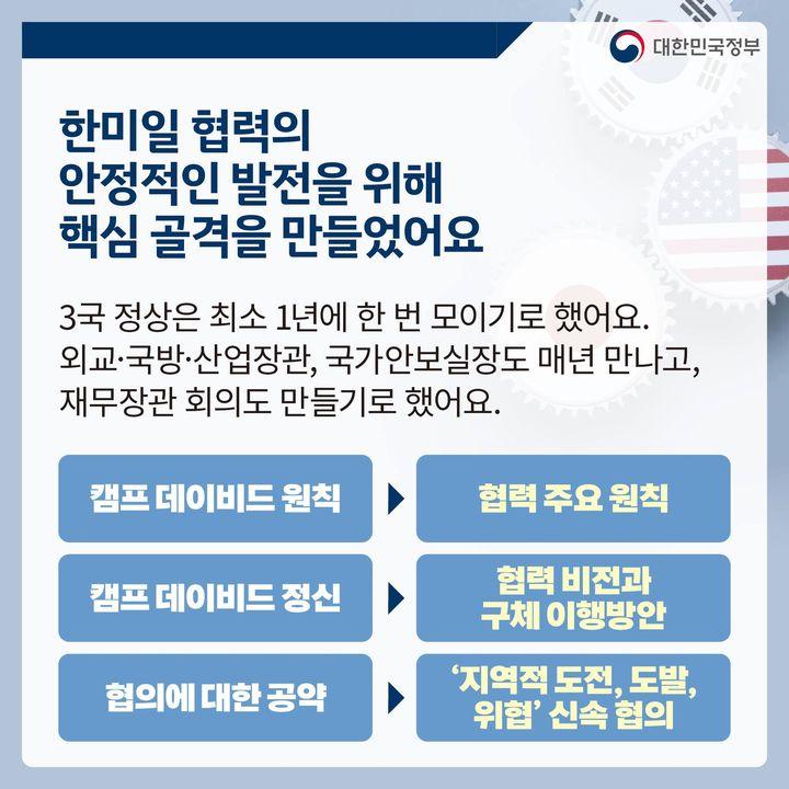 한미일 협력의 안정적인 발전을 위해 핵심 골격을 만들었어요.