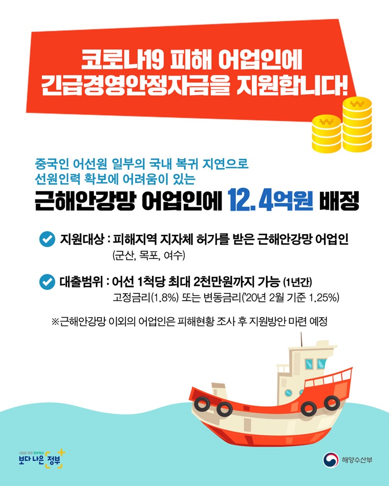 코로나19 피해 어업인에 긴급경영안정자금을 지원합니다!