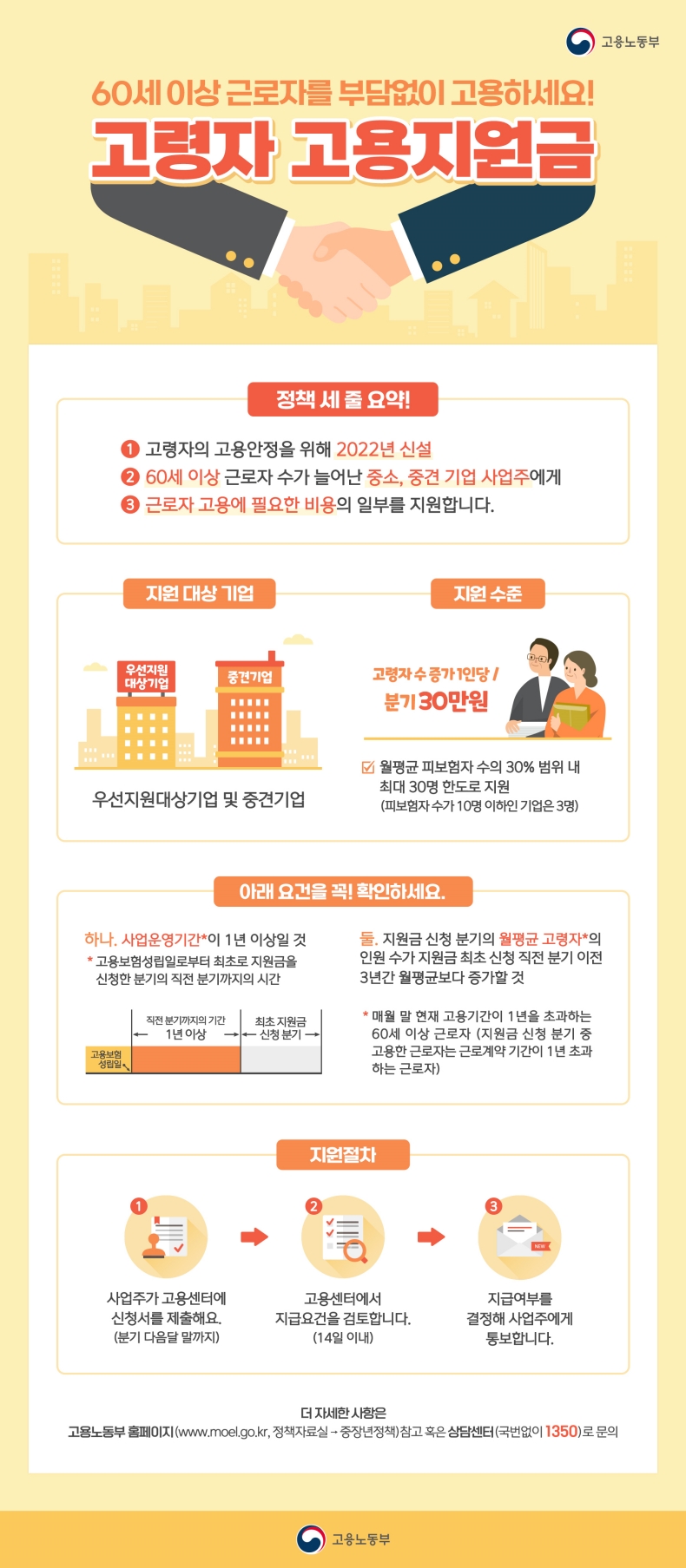 고용노동부 홈페이지(정책자료실 > 중장년 정책) 참고 혹은 상담센터(국번없이