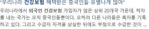 · 중국인(동포)들이 한국에서 건강보험료는 적게 내면서 고액의 의료혜택을 받는다?