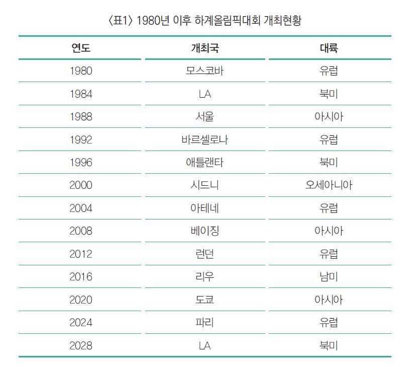 1896년 그리스 아테네에서 시작된 근대 올림픽은 시간이 지나면서 대중들의 관심과 인기를 얻게 되었으며, 올림픽대회가 내포하고 있는 정치, 사회, 경제, 문화, 스포츠적인 가치의 증가로 이어져 왔다. 이로 인하여 많은 국가들이 올림픽대회 유치에 관심이 증가하면서, 올림픽대회 유치와 개최가 국가발전에 많은 도움을 준다는 인식이 자리 잡게 되었다. 이에 따라 올림픽대회 개최에 엄청난 재정적인 투자와 전 국민적인 노력이 요구됨에도 불구하고 대회 개최가 가지고 있는 다양한 효과로 인하여 많은 국가들이 대회를 개최하기 위하여 노력해왔다. 즉, 지금까지 올림픽대회는 투자 대비 효과 측면에서 다양한 긍정적인 효과를 거둘 수 있는 고부가가치 상품으로 인식되어왔던 측면이 있다.