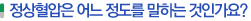 정상 혈압은 수축기 혈압이 120 mmHg 미만이고 이완기 혈압이 80 mmHg 미만일 경우를 말합니다. (120/80 mmHg로 표시) 일반적으로 치료를 요하는 고혈압은 수축기 혈압이 140mmHg 이상이거나 확장기 혈압이 90mmHg 이상인 경우를 말합니다. 일반적으로 혈압이 115/75 mmHg에서 20/10 mmHg 증가할 때마다 심혈관 질환의 위험은 두 배씩 높아지는 것으로 알려져 있습니다. |