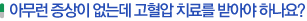 고혈압 환자라고 무조건 혈압약을 먹어야 하는 것은 아닙니다. 고혈압의 정도와 합병증, 위험인자, 표적장기 손상, 동반질환의 유무에 따라 고혈압의 심각도가 달라지므로 이에 따라 생활요법만으로 혈압을 조절하거나 추가적으로 혈압약을 복용해야 하는지 여부를 판단합니다. 정확한 진단과 함께 전문의의 지도가 필요합니다. |