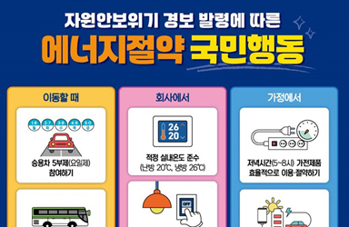 - (참고) 에너지 위기 극복, 기후에너지환경부와 지방정부가 함께한다. ▷ 기후에너지환경부-지방정부 에너지절약 협력회의 개최 기후에너지환경부(장관 김성환)는 3.27(금) 10시 전국 17개 시·도와 에너지절약을 위한 에너지 절약 협력회의를 화상으로 개최한다고 밝혔다. 이번 회의는 중동전쟁으로 자원안보위기 주의단계가 발령되고, 공공기관 승용차 5부제(요일제)... 2026-03-27 기후에너지환경부