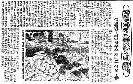 | 1987년도 7월 신문기사. 비닐에서 과일·야채가 전전후 시대 활짝 |