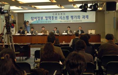 최 교수의 발제에 대해 토론자로 참석한 안차수 경남대 교수는 “새로운 정책홍보시스템의 목표에 대한 논의가 분분하다”며 “비정상적인 관행을 바로잡기 위한 것인지, 아니면 광의의 의미에서 대국민 정책서비스를 강화하겠다는 것인지에 대한 목표가 분명해야 한다”고 말했다.