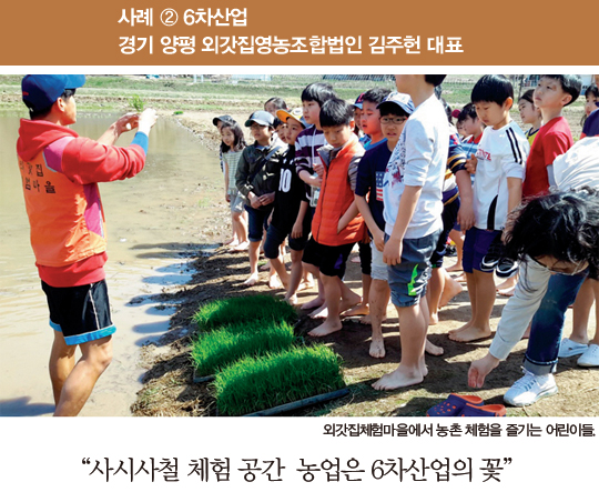 사례집 2권(6차산업편)은 생산(1차), 가공(2차)에 서비스(3차)를 아우르는 융·복합(6차)으로 매출을 올린 사례를 담았다. 마치 외가에 놀러간 듯한 분위기를 느끼게 하는 경기 양평군의 외갓집체험마을을 비롯해 대추를 매개로 체험 및 농촌 문화관광 프로그램을 운영하는 경북 경산시의 대추농장, 조그만 목장에서 치즈와 버터 만들기 등의 체험 프로그램을 운영해 알찬 수입을 올리는 경기 여주시의 목장 등을 소개했다.