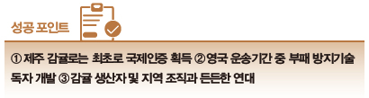 문 대표가 영국 시장에 주목한 이유는 영국인이 즐겨 먹는 과일 중 하나가 감귤이기 때문. 그런데 농산물의 90% 이상을 수입하는 영국이 1~3월 수입하는 감귤 물량은 전혀 없는 실정이었다. 이런 틈새시장을 공략해 맛과 당도에서 인정받은 결과 영국으로 감귤을 대량 수출하는 터키, 스페인의 감귤보다 2배 이상의 가격을 받을 수 있었다. 이내 영국은 국내 감귤의 최대 수출국으로 부상했다. 2위인 오스트리아에 견줘 200배 이상의 수출 실적을 기록할 정도다.