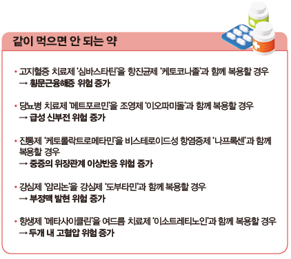 고지혈증 치료제와 항진균제, 항생제와 여드름 치료제, 진통제와 비스테로이드성 항염증제, 강심제 ‘암리논’과 ‘도부타민’ 등은 함께 복용하면 안 되는 약품이다. 의약품 안심서비스는 의약품 처방 및 제조 시에 이처럼 함께 먹어서는 안 되는 약품은 아닌지, 해당 의약품이 환자가 다른 병·의원에서 처방받아 먹고 있는 약과 중복되지 않는지 등을 실시간 점검하여 결과를 알려줌으로써 의약품 부작용을 예방할 수 있게 돕는다. 의사 및 약사가 컴퓨터 시스템을 통해 단 0.4초면 결과를 확인할 수 있다.
