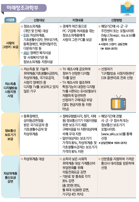 [저소득층 중앙부처 지원사업 안내] 미래창조과학부