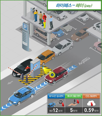 하이패스로 주차요금을 지불하면 정산절차가 간소화돼 평균 주차장 출차시간이 12초 정도가 단축되는 것으로 나타나 주차장 운영자와 이용자 모두 시간을 절약할 수 있다.