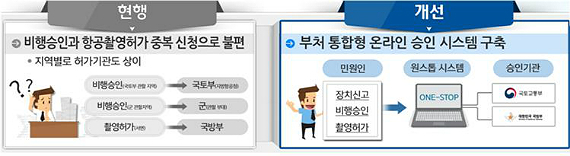 그동안 기체신고, 비행승인, 항공촬영허가 등 드론 이용 시 필요한 행정절차는 각각 국토부와 군 등으로 돼있던 민원상의 불편함이 있었다.