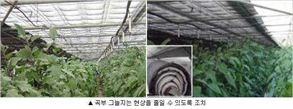 따라서 해 뜬 뒤 1시간 이상 흐른 뒤 시설 내부온도가 충분히 올라간 시점에서 커튼을 열어주는 것이 필요하다.