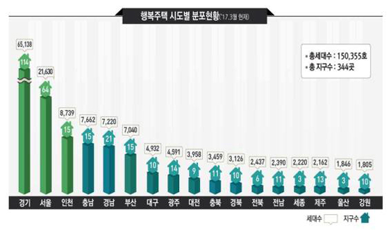 시·도별로는 경기도가 6만 5000가구(43%)로 가장 많고 다음으로 서울 2만 2000가구 (14%), 인천 8700가구(6%) 순이다.