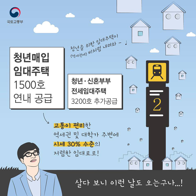 지난 7월 추경예산이 통과되면서 시세 30% 수준의 청년매입임대주택 1,500호가 연내 공급됩니다. 또한 청년과 신혼부부를 위한 전세임대주택 3,200채도 연내 추가로 내놓을 방침입니다.