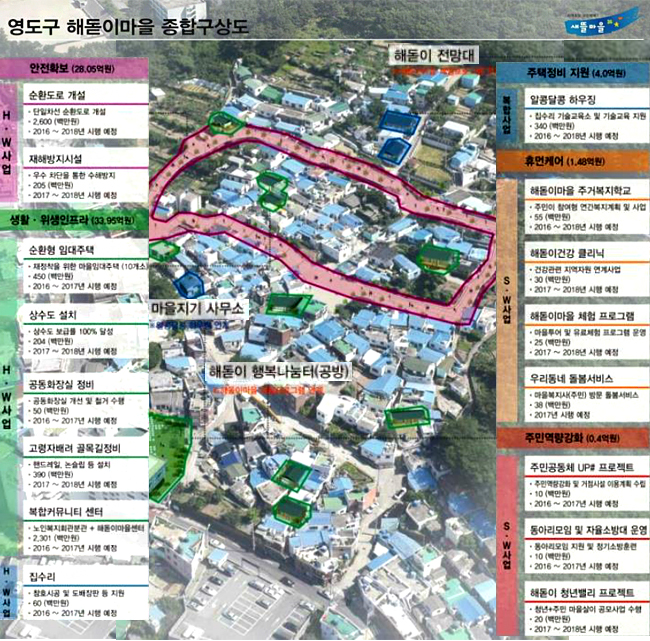 부산 영도구 해돋이마을 사업은 지난 2015년 국가균형위원회 공모사업에 선정된 취약지역개조사업으로 영도구는 국토부와 균형위와 함께 사업을 적극 추진해 물리적 주거환경개선뿐만 아니라 휴먼케어 및 주민역량강화 부분에도 많은 성과를 창출하고 있다.