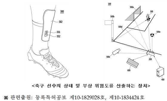 정강이 보호대에 내장된 센서를 통해 측정된 선수의 생체 정보와 카메라가 촬영한 경기장 환경 정보, 선수의 활동 정보를 결합해 선수의 부상 위험도를 산출하여 부상 및 응급 사고를 미연에 방지할 수 있다.