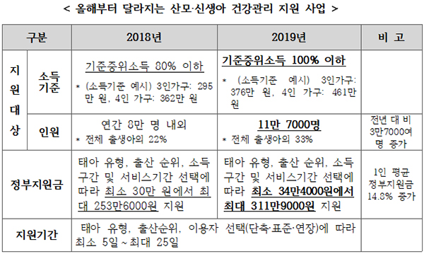 정부가 올해 11만 7000명에게 ‘산모·신생아 건강관리 서비스’를 지원한다.