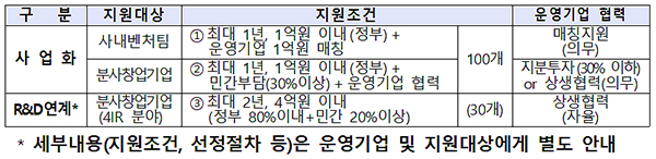 문의: 중소벤처기업부 기술창업과 042-481-4414