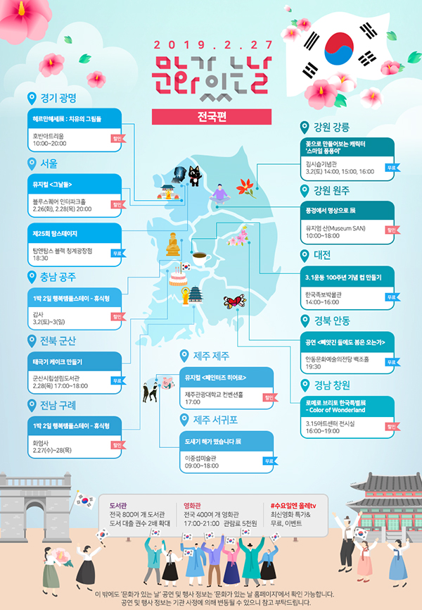 2월 ‘문화가 있는 날’인 오는 27일을 전후해 1839개 문화행사가 전국 주요 문화시설 등지에서 펼쳐진다.