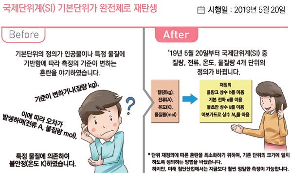 재정의 되는 국제기본단위는 킬로그램(kg, 질량), 암페어(A, 전류), 켈빈(K, 온도), 몰(mol, 물질량)의 4가지 기본단위다.
