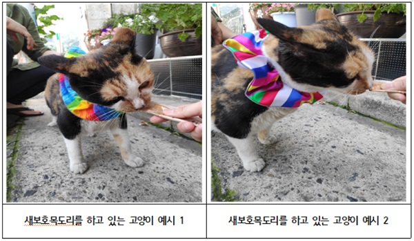새보호목도리를 하고 있는 고양이 예시