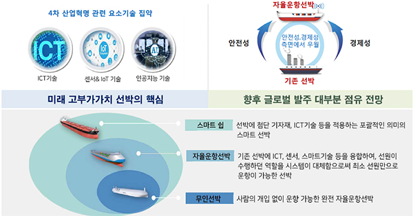 자율운항 선박은 사물인터넷(IoT), 빅데이터, 인공지능(AI) 등 4차 산업혁명 관련 기술이 집약된 미래 고부가가치 산업이다. 이번 사업은 미래 선박시장 및 해운항만 패러다임 전환에 대비하기 위한 첫 단계다.