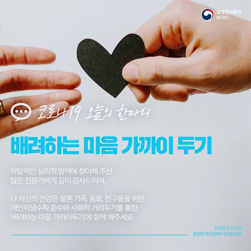 [코로나19 오늘의 한마디] 배려하는 마음 가까이 두기
