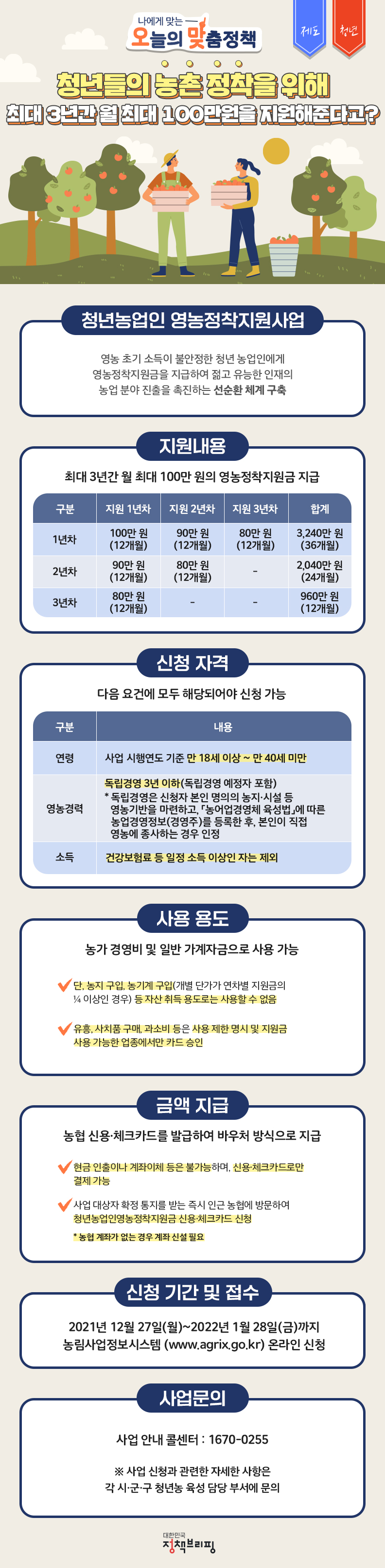 ![[오맞! 이 정책] ‘월 최대 100만원’ 청년 농부 영농정착자금 신청하세요!](https://www.korea.kr/newsWeb/resources/temp/images/000218/20220103_문체부-정책브리핑_영농정착지원금_v2_3.jpg)