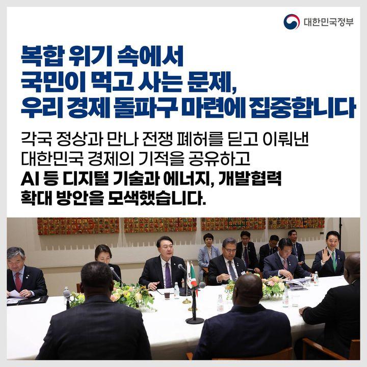 각국 정상과 만나 전쟁 폐허를 딛고 이뤄낸 대한민국 경제의 기적을 공유하고 AI 등 디지털 기술과 에너지, 개발협력 확대 방안을 모색했습니다.