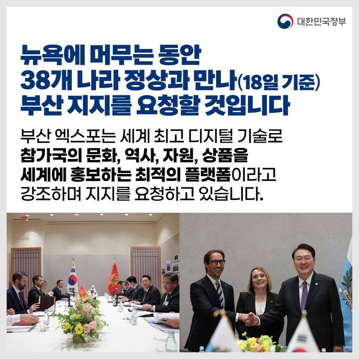 뉴욕에 머무는 동안 38개 나라 정상과 만나(18일 기준) 부산 지지를 요청할 것입니다.