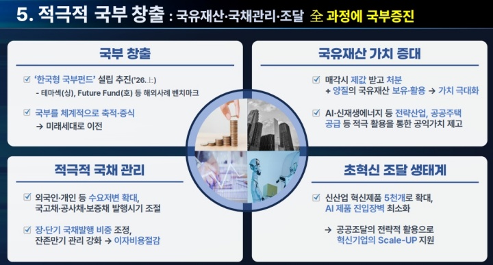 국유재산 관리 정책도 '적극적 가치 창출'로 전환해 보존 부적합 재산은 제값을 받고 매각하되, 효용 가치가 높은 재산은 전략 산업 지원이나 주거 안정 등에 적극 활용할 방침이다.