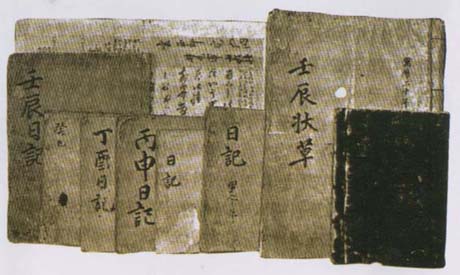 | 『난중일기』. 이순신 장군의 친필초본으로 충남 아산 현충사에 있다. 원균 장군과는 달리 이순신 장군의 경우 『난중일기』 등 많은 자료가 남아있어 평가하기가 수월했다고 볼 수 있다(국보 제76호). |