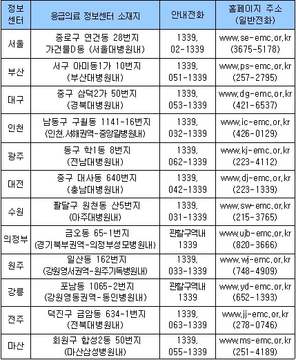 추석연휴 응급 의료정보센터 1339 운영