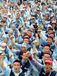 | 특수고용노동자들이 노동자 인정 결의대회를 하고 있는 모습 |