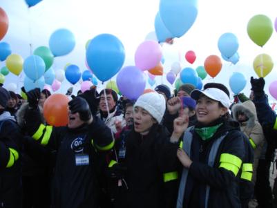 | 농협중앙회 신입사원들이 오대산 철야 극기 훈련을 마치고 |