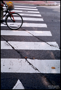 도심 횡단보도를 건널 때 오토바이나 자전거를 탄 채로 보행자와 뒤섞여 횡단하는 사람들이 있는데 이는 자칫 커다란 위험을 초래할 수 있을 뿐만 아니라 옳은 방법도 아니어서 각별히 삼가야 한다.