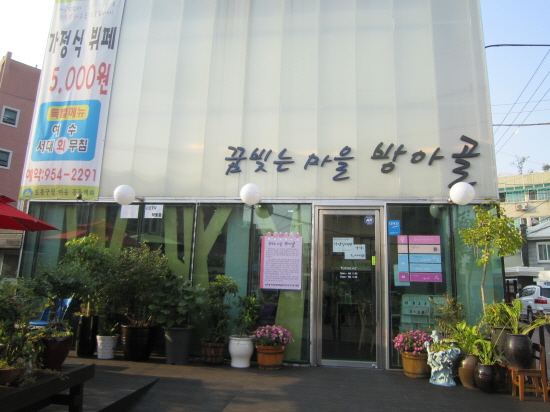 방학2동 주민센터를 지나 조금 걸으니, 새하얀 건물이 번듯한 자태를 드러났다. 2011년 서울시 주민참여형 재생사업으로 들어선 ‘꿈빚는 마을 방아골’이다. 지역주민과 소외된 이웃에게 안전하고 건강한 식사를 제공하고, 지역사회 문화 활동에 기여하기 위한 마을도서관을 운영하고 있다. 이 곳 역시 주민들의 참여를 통해 탄생한 지역공동체 공간이다.