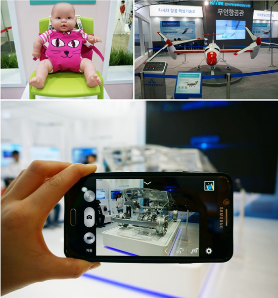 ▲ 1. 여성발명가 발명품 전시 2. 차세대 항공핵심기술 ‘무인항공관’ 3. 포스코 VR체험