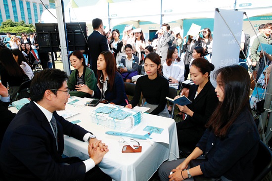 ‘대한민국 청년 20만 플러스 창조일자리 박람회’에서 여대생들이 면접을 보고 있다.(사진=공감포토) |