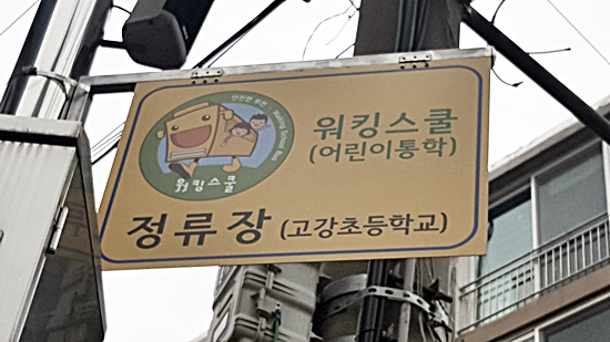 워킹스쿨(어린이통학) 정류장 표지판. |